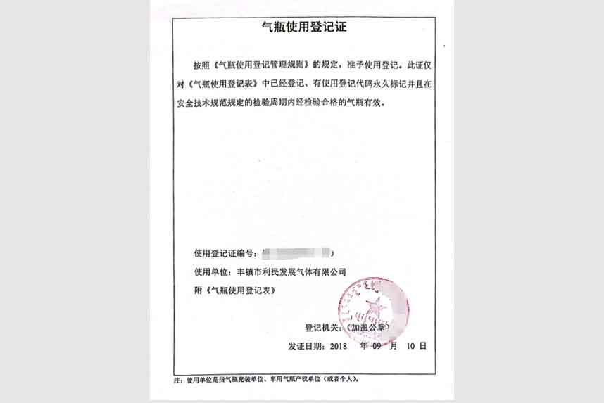 气瓶使用登记证