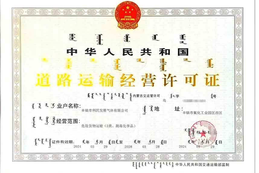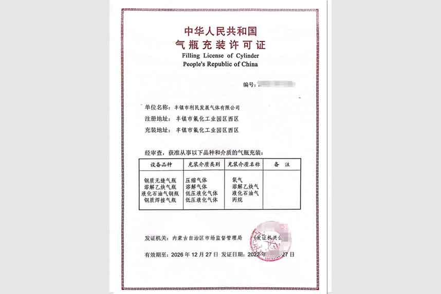 气瓶充装许可证